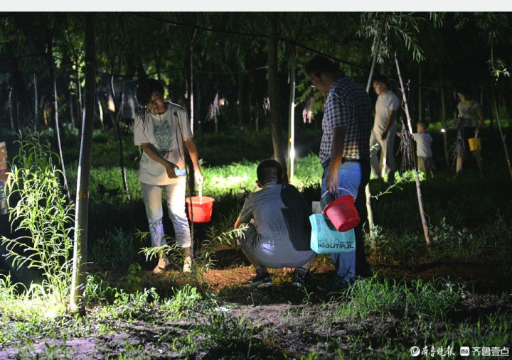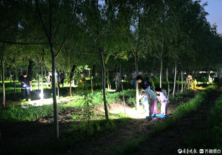 济南雨后的夜晚仍闷热难耐,章丘区相公庄街道李房新村的柳林里,点点手电光在树丛中闪烁,宛若星河,这是附近的人们在捉金蝉。“这儿有一只,这棵树上有5个”……交流声此起彼伏,虽然看不到表情,但从兴奋的声音中不难听出捕蝉给人带来的惊喜和快乐。