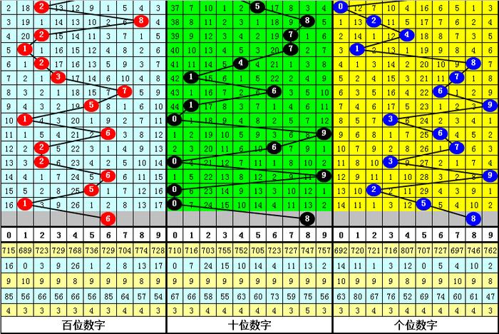 百位:上期开出1,近10期012路比为3:3:4,其中1路号遗漏5期再出,本期放弃1路号,关注0路号,看好6。